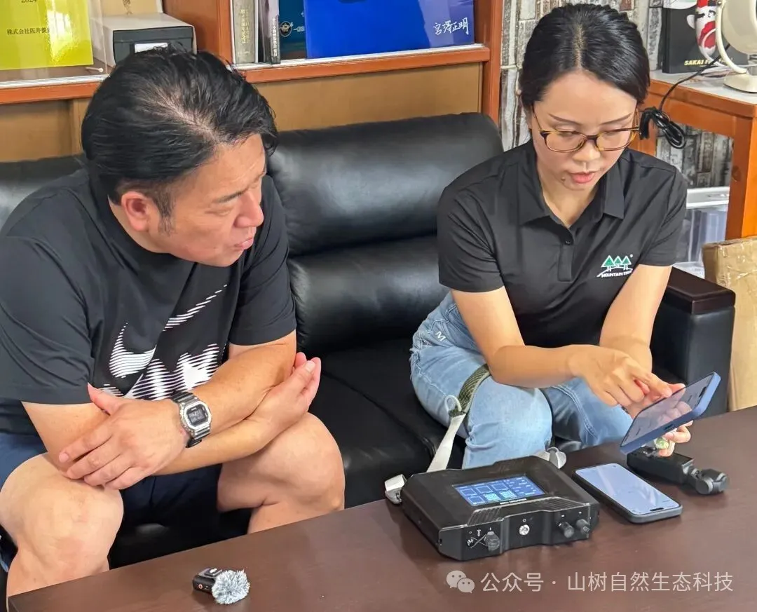 本次探访,山树技术团队带来了山树智能水质监测系统,现场对阪井的冠军鱼池进行了水质检测,为健太郎先生管理水质提供专业数据参考。